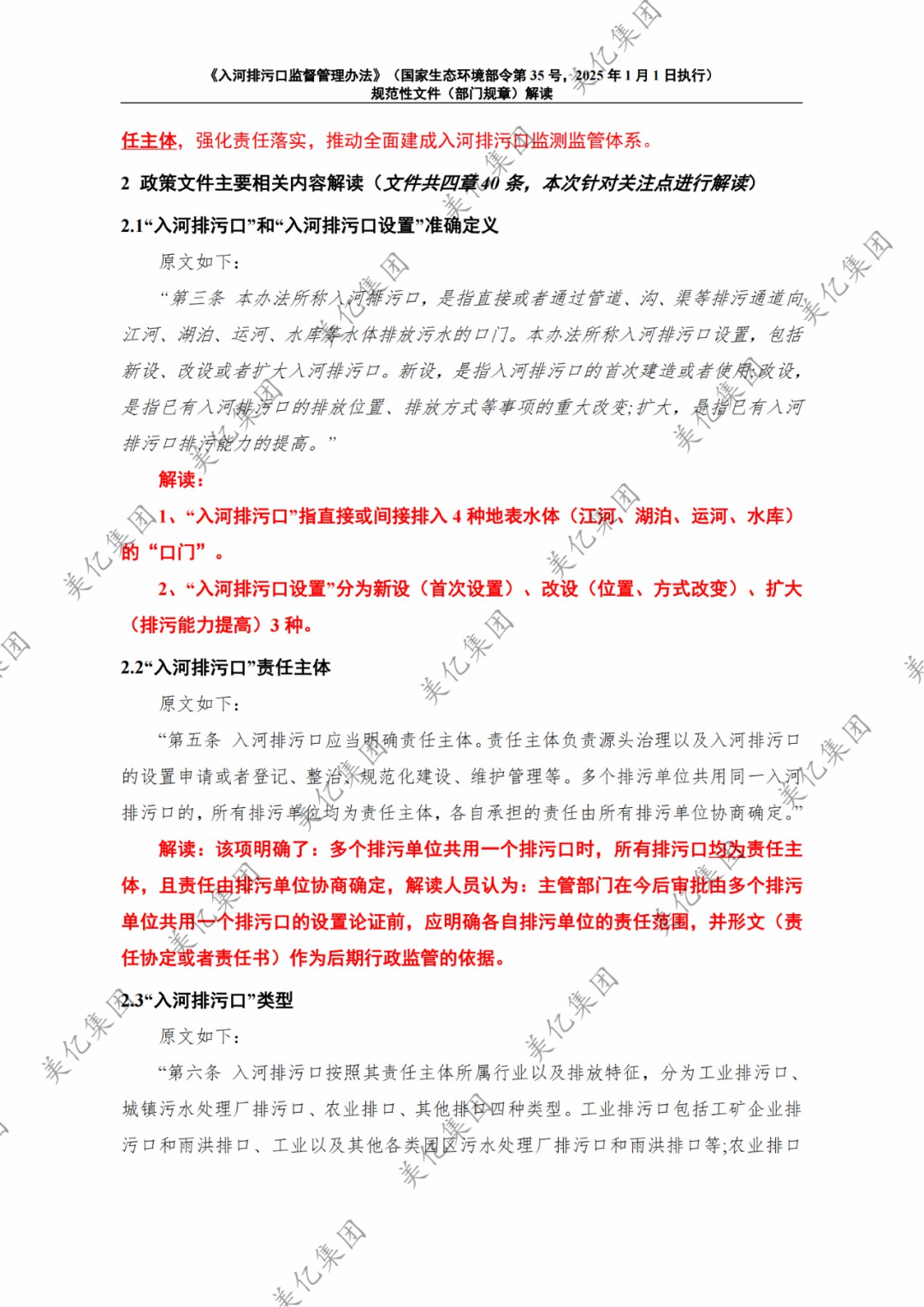 2024年11月1日,《入河排污口監(jiān)督管理辦法》(部令第35號)予以公布,自2025年1月1日起施行。《入河排污口監(jiān)督管理辦法》文件內(nèi)容解讀如下: